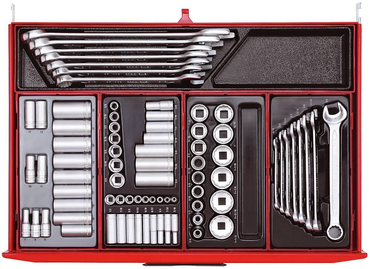 Værktøjssættet leveres i en praktisk værktøjsvogn der gør det let at have værktøjet med rundt - så har du altid dit værktøj lige ved hånden når det skal bruges. Vognen har 9 kuglelejrede skuffer til at trække ud - dette giver et godt overblik over indholdet i hver skuffe.